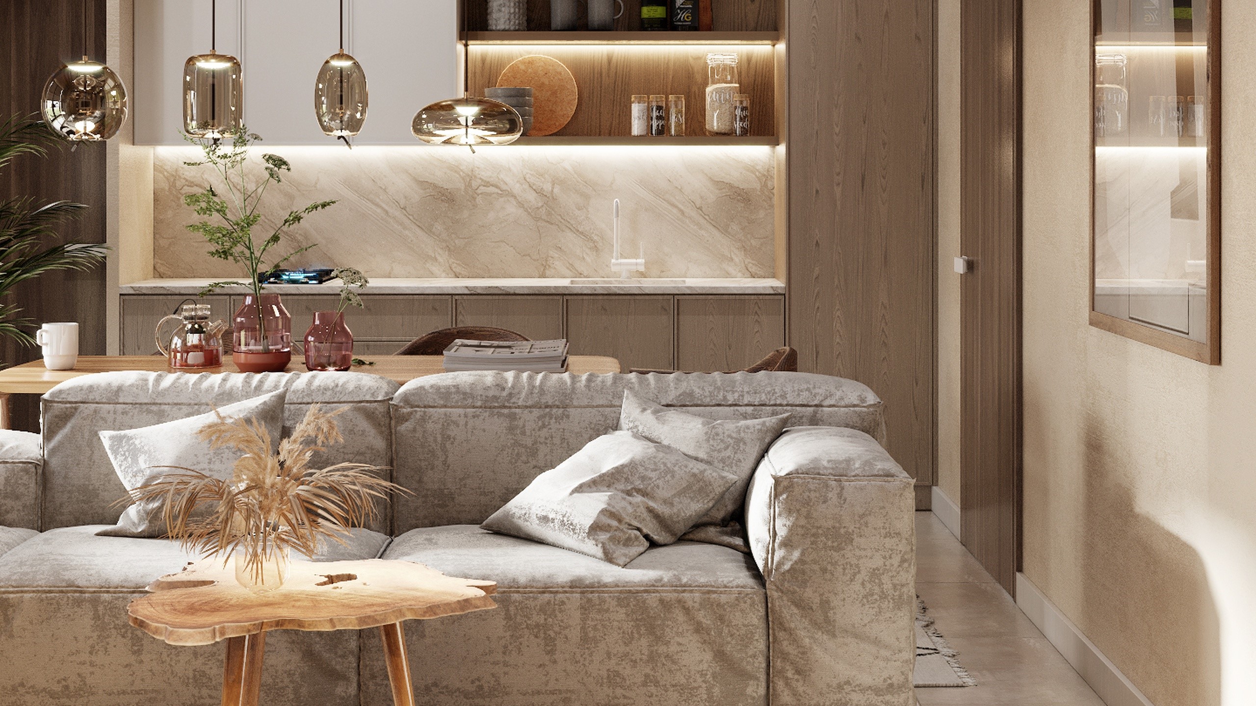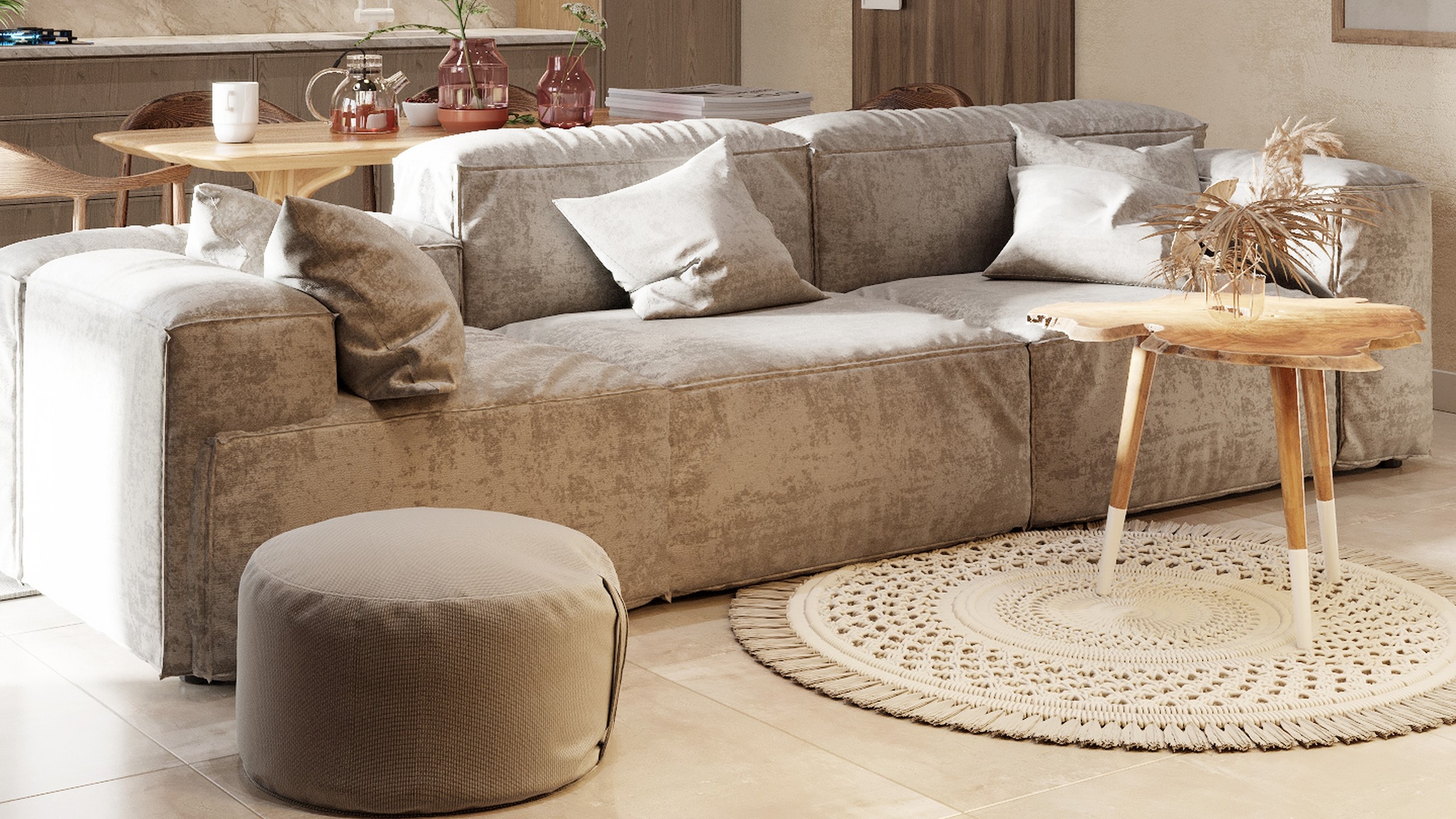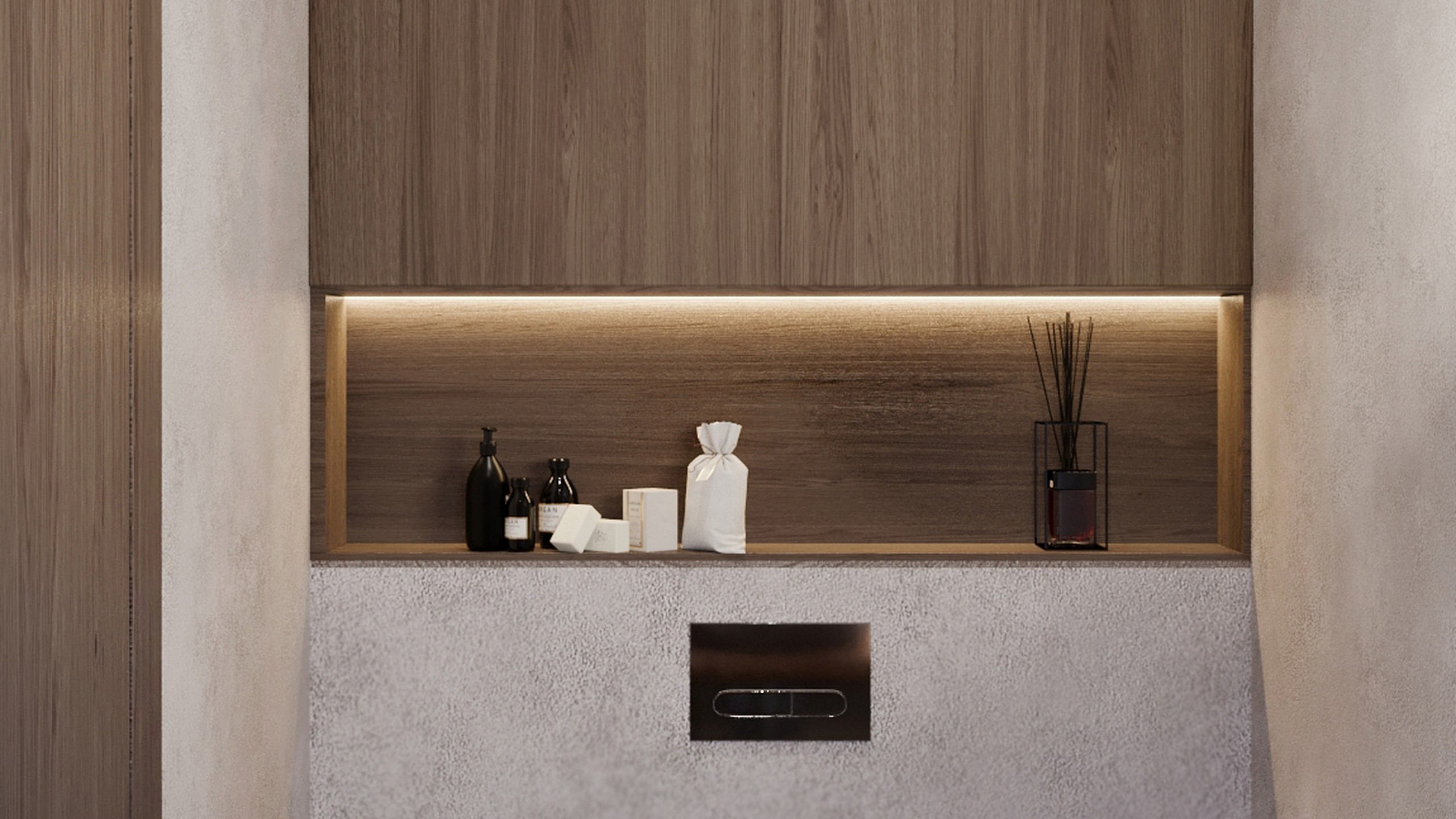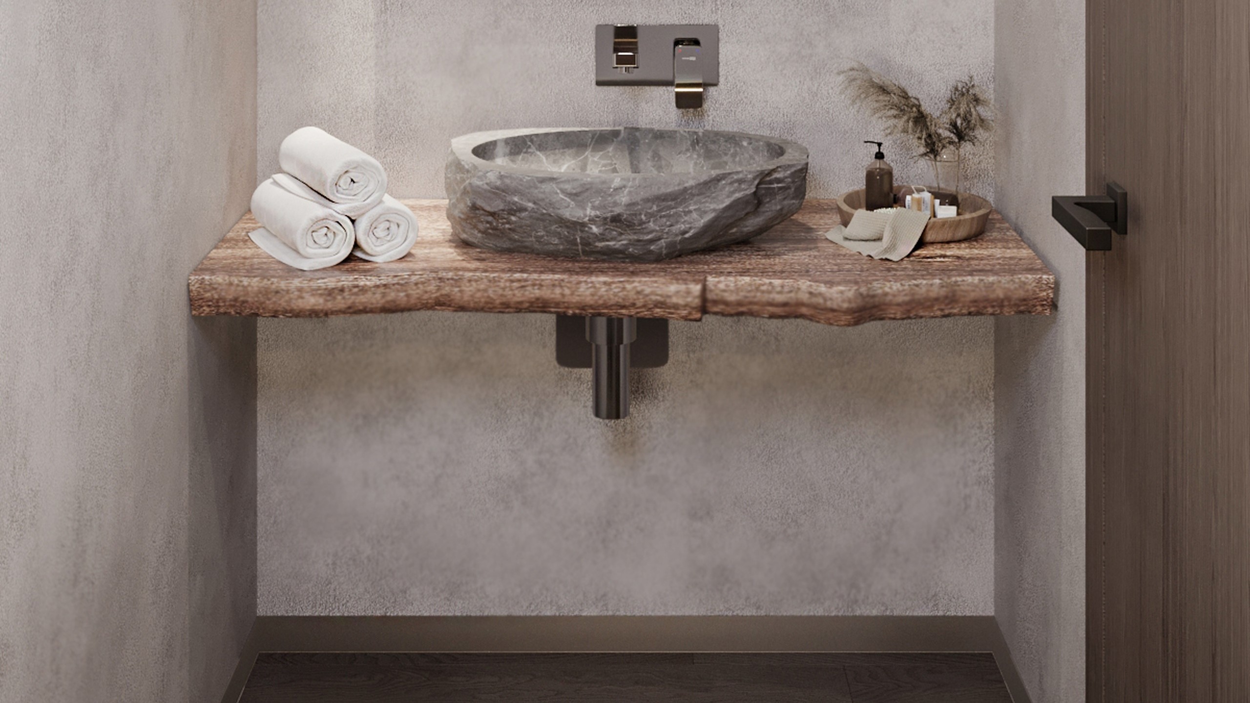 В современном ритме жизни баня перестает быть просто функциональным помещением — она превращается в личное пространство восстановления. Проект, реализованный дизайнером Викторией Искричевой в поселке «Дубрава», — именно об этом: о новых смыслах традиции и о том, как материал помогает задать настроение. Банный комплекс стал логичным продолжением большого семейного дома — местом, где собираются друзья, где ценят простые радости. Здесь все подчинено идее естественности: тактильные поверхности, мягкий свет, теплые оттенки и продуманная функциональность. В зоне общего пользования использован керамогранит с противоскользящим покрытием — практичное решение для активного пространства. Но акцент сделан на деталях: мозаика Chess-3D из коллекции Marmulla и Trail из коллекции Selection создают игру рельефов и отражений, формируя особую «тактильную эстетику».
