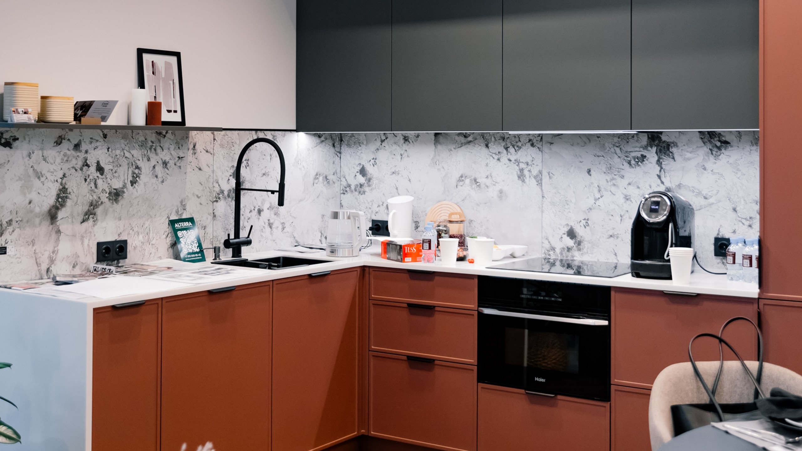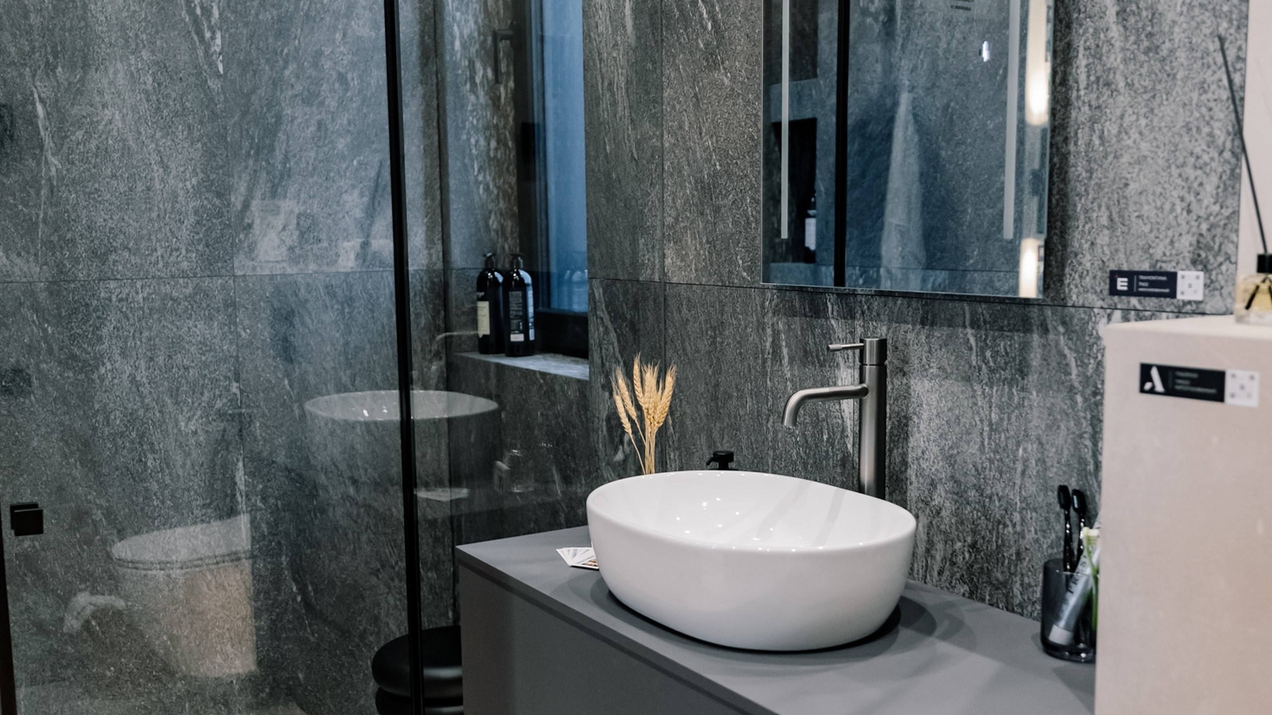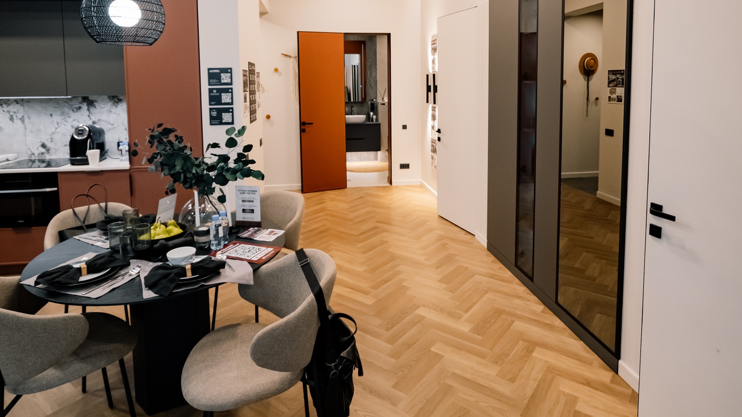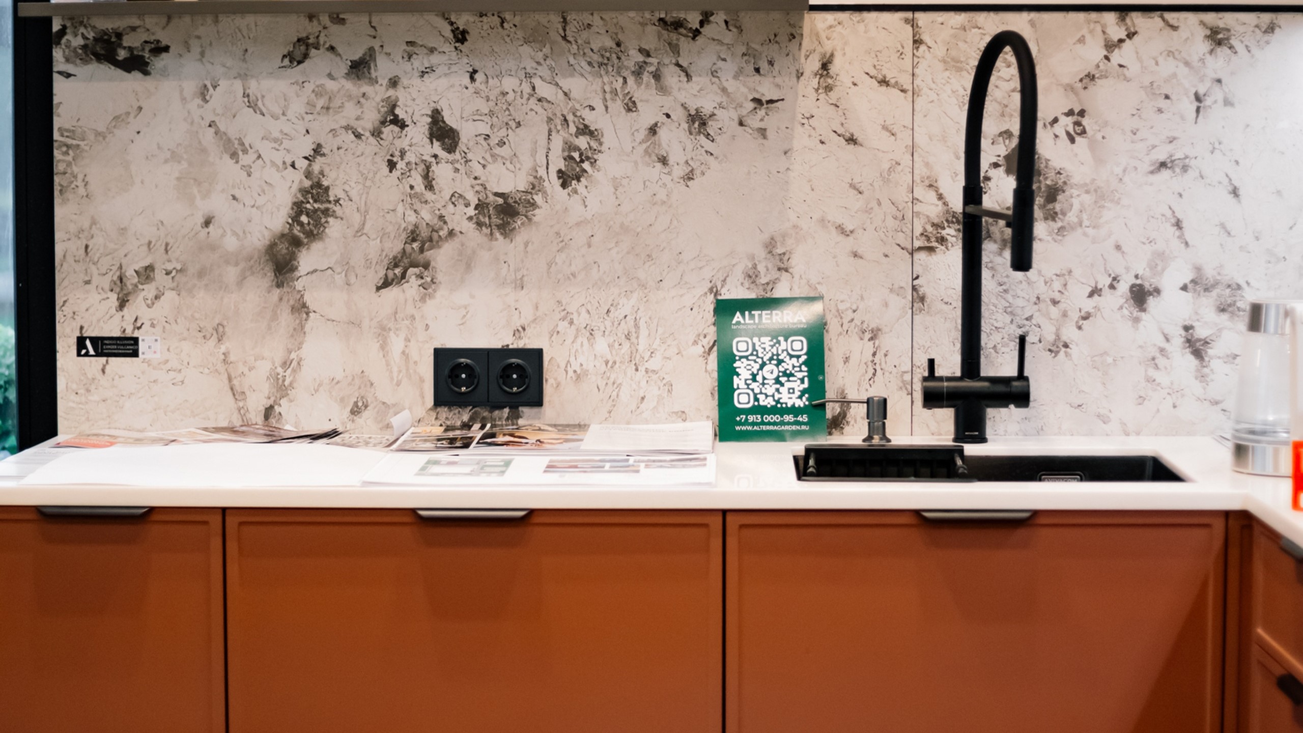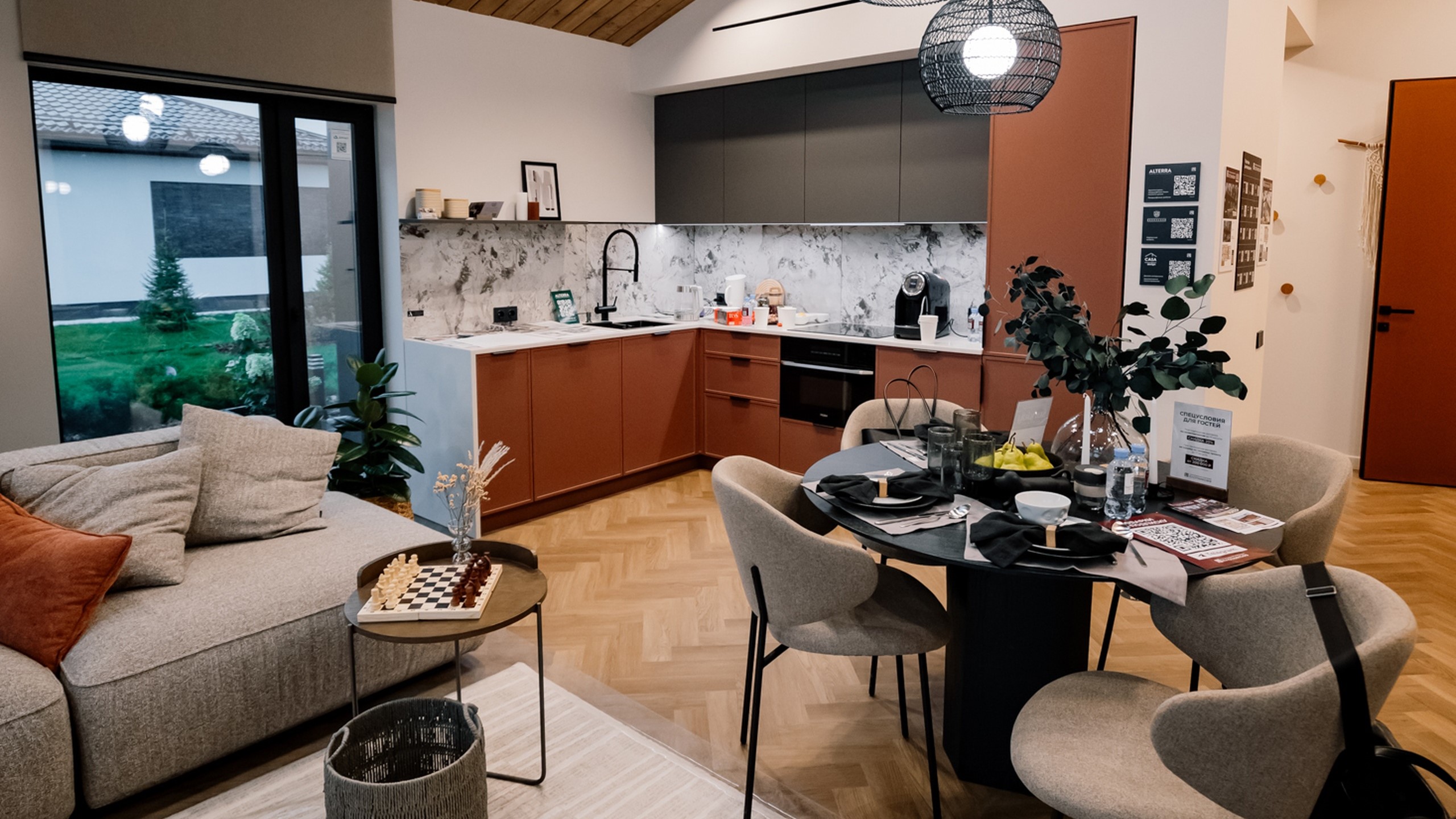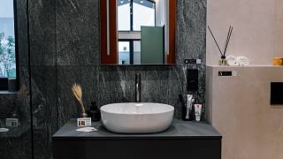 На Open Village Siberia компания Плотникофф показала загородный дом, который сочетает функциональность и эмоциональный комфорт. Керамогранитные вставки Estima на фасаде подчеркнули фактуру кирпича и придали архитектуре глубину. В ванной комнате дизайнеры выбрали коллекцию Magmas — природные оттенки и выразительный каменный рисунок делают пространство цельным и атмосферным. На кухне — гармоничное продолжение: изысканная Ametis Exotica, идеально дополняющая гарнитур.